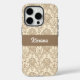 A beautiful vintage damask pattern in beige on a pale tan background creates an elegant iPhone case. Personalise with your name in a dark beige band in the middle.
