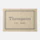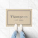 This understated doormat features your family last name in elegant script with your established year, framed by a double-line border on a soft beige-gray background. The gentle warm neutral bridges beige and gray tones for an effortlessly coordinated porch look. A charming housewarming gift. All text is fully customizable.