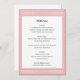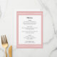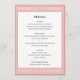 Create your own personalised table menus for a special event. Classic typography and a Greek key border add timeless elegance to your celebration — a geometric, maze-like pattern, inspired by ancient Greek and Roman art. This editable template lets you customise the text to perfectly suit your dishes or courses. Perfect for a formal dinner party, elegant lunch, brunch, birthday, wedding, or other event. Printed colours: pink and white, with dark grey lettering.