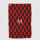 Classic Black and Red Diamond Pattern and Monogram Golf Towel