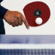 Classic Black and Red Diamond Pattern & Monogram Ping Pong Paddle