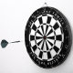 A classic dartboard design with alternating black and white triangles.