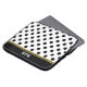 Here's black-and-white polka dot pattern. At the bottom of the bag, there is a black band that you can use to customise the bag with your initials/text. The faux gold lines are an artistic rendering as there's no gold foil on product.