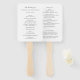Elegant wedding program hand fan featuring a simple and classic design with your event details in traditional serif and elegant script fonts.