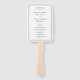 Elegant wedding program hand fan featuring your event details in serif and script fonts inside of a double border.