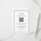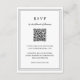 Classic black and white wedding RSVP Card featuring a simple and minimal design with an optional QR Code and details surrounded by a double border (if you prefer, you may remove the QR code in the design editing tool). The fonts alternate between and elegant script, a traditional serif and minimalist sans serif fonts. This response card is great for a formal wedding.