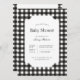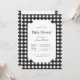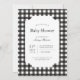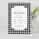 Classic, timeless black and white gingham plaid check baby show invitation. Customizable font styles and layout, featuring a simple patterned backdrop with a clean, geometric plaid pattern. Perfect for unisex baby shower invites, baby boy shower invites, and country chic baby shower invites.