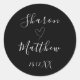 Classic Black and White Handwritten Script Wedding Round Sticker