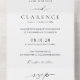 Classic all in one wedding invitation with a simple and minimal black and white design with a combination of traditional serif fonts and an elegant script along with your date in a large format for a modern touch. Use the template to generate a QR Code or remove it in the design editing tool. This elegant wedding invitation is great for a formal wedding.