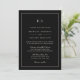 An elegant thin border and initial monogram detail in soft ivory ecru provide beautiful contrast against the rich black background colour of these chic wedding invitations. A timeless choice for elegant weddings, with beautiful traditional typefaces and a format layout.