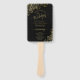 These beautiful hand held fans are designed to serve as both cooling for your guests, and a wedding program. The elegant design features gold script calligraphy on a black background with ornate golden faux foil lace frills in the corners. There is space to list the ceremony order as well as the wedding party and a short thank you note. Wonderful memento of your special day.