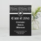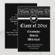 Black and white with subtle damask background and mortarboard icon is perfect for the classy and sophisticated graduate. Solid black with traditional swirl pattern blend seamlessly with old English lettering. © www.CustomInvitesOnline.com