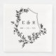 Elegant wedding napkins perfect, featuring a black shield crest adorned with black leaves, with your monogram and wedding date in the centre.