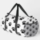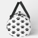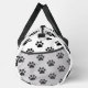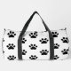 This timeless Gear bag features a clean white background patterned with classic black paw prints. It's a versatile Kit bag and an essential Weekender for minimalist pet lovers.