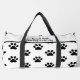 Classic Black Paw Print White Monogram Personalise Duffle Bag