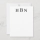 Timeless and elegant custom flat note card design features black letters that can be personalised with the first, last, and middle name initials in classic serif type. Space for your handwritten note is included and the back of the card features a handsome pattern of horizontal black and white stripes.