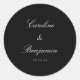 Stylish Formal Classic Traditional Script Elegant Wedding Invitation Custom Classic Round Sticker with Black Background and White Text