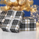 Stylish modern tartan pattern featuring black, white and gold plaid.