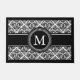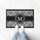 Classic Black White Damask Floral Pattern Monogram Doormat