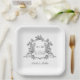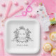 Elegant black and white floral crest wedding paper plate with monograms, perfect for a modern classic or romantic vintage wedding. For more advanced customisation of this design, please click the BLUE DESIGN TOOL BUTTON above! Matching items are also available.