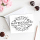 A clean and sophisticated save the date featuring an elaborate black scrollwork frame with intricate flourish detailing on a crisp white background. The bold black-on-white design offers maximum contrast and timeless elegance suitable for a wide range of wedding styles from formal to vintage-inspired. All names, dates, and details are fully customizable.