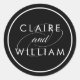 Our personalised wedding stickers in elegant and classic black and white are a perfect finishing touch to your invitations, favours and thank you cards. Design features the couple's names in crisp white lettering on a rich black background with "and" in decorative calligraphy script.