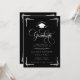 Celebrate a remarkable academic milestone with this classic black and white graduation invitation, designed with timeless elegance and formal sophistication. Featuring ornate script typography, decorative corner accents, and a graduation cap emblem, this invitation makes a striking statement for a high school or college graduate.