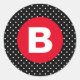 Classic Black & White Polka Dot with Red Monogram Round Sticker