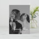 Classic Black & White Script Wedding Photo Thank You Card. Personalize this minimalistic and elegant, black and white wedding thank you card with a wedding photo, bride and groom names, your wedding date, and thank you message on the back.