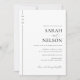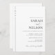 This invitation is a masterpiece of minimalist design, reflecting a perfect blend of classic elegance and modern simplicity. The sharp black typography against a pristine white background offers a clear, readable invitation that speaks directly to the sophistication expected at Sarah and Nelson's wedding. The thoughtful layout, including a subtle nod to traditional styling with its delicate script for the header, invites guests to a celebration of love set within the serene backdrop of Maplewood House. This invitation is not just an announcement, but a prelude to the grace and refinement awaiting the guests.