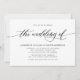 Simple, classic elegant wedding invitation features typography script in handwritten lettering ''the wedding of'' and details in bold capital lettering on a white background.
