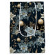 This classic blue and gold ornaments and poinsettias pattern is perfect for your wine, small and medium size holiday gift bags. AI assisted graphic purchased with commercial use. Artwork: DreamCafeArt