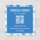 Classic Blue and White Gingham Chequered , QR Code Square Business Card