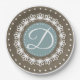 Classic blue brown monogram birthday party paper plate