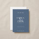 Announce your special day in timeless style with this modern save the date card, defined by elegant blue tones and a warm minimalist tone. Refined serif typography and a romantic ampersand overlay set the mood, while script typography accents give it contemporary flair. The clean layout and muted colour palette, inspired by soft neutral tones, provide an understated yet sophisticated look making this the ideal neutral save the date for classic or contemporary wedding themes. Meticulously designed for couples who appreciate a blend of romantic serif charm and refined modern details, this card gracefully captures the anticipation and joy of your celebration.