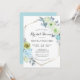 Celebrate with your close friends at your bridal shower and invite them with this lovely blue floral bridal shower invitation. This design features a beautiful gold geometric frame with soft watercolor floral bouquets with roses and hydrangeas in blue and off white. Delicate botanical trim with blue leaves perfectly complements this beautiful bridal shower invite.