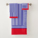 CLASSIC BLUE GEOMETRIC STRIPE RED TRIM BATH TOWEL SET