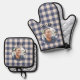 Classic Blue Gingham Plaid Custom Name & Photo Oven Mitt & Pot Holder Set