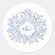 Classic blue hand drawn leaf monogram art wedding classic round sticker