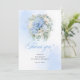 Boho wedding thank you card with blue hydrangea watercolor flowers and eucalyptus greenery, professionally printed by Zazzle on premium cardstock with crisp detail, rich color, and a smooth elegant finish.