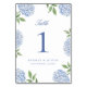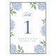 Classic Blue Hydrangea Flower Wedding Table Number