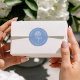 Add a soft and polished detail to your wedding with these blue hydrangea wedding stickers, featuring a white hydrangea and lettering set against a blue background for a fresh and airy look. The circular layout highlights the couple’s names and wedding date around the center design, creating a clean and cohesive presentation. Ideal for sealing envelopes, labeling favor bags and boxes, or using on welcome bags, these stickers are perfect for spring and summer weddings, garden settings, and coastal weddings. A beautiful way to extend your wedding design across your details.