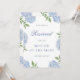 Classic Blue Hydrangea Wedding Reserved Seat Card