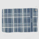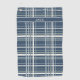 Classic plaid pattern made modern with navy blue, grey and ivory stripes.