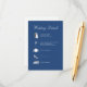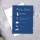 Elegant true blue wedding details card featuring refined calligraphy script and a clean, modern timeline layout. This sophisticated enclosure highlights your full wedding day schedule—from ceremony to reception, dinner, dancing, and send-off—paired with minimal icons for a polished, organized look.