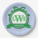Classic Blue Stripes Green Greek Key Full Monogram Paper Plate