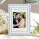 Announce your wedding with refined, timeless style using this Classic Blue Stripe Wedding Save the Date, featuring “Save the Date” in elegant script with your wedding date displayed just below for a polished and traditional introduction. Your engagement photo is framed within a classic double border, creating a clean focal point, while your names and wedding location are arranged beneath in a tailored, well-balanced layout. A soft blue striped background surrounds the design, offering a light and airy feel with a subtle coastal blue tone that evokes relaxed elegance and classic seaside charm. The back of the card features a coordinating design with a QR code and space for your wedding website, making it easy for guests to access additional details, RSVP information, and event updates. Ideal for coastal weddings, summer celebrations, and couples drawn to classic yet approachable stationery, this blue save the date blends structure and softness for a look that feels effortlessly timeless.
