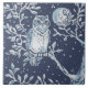 Classic Blue White Ornate Owl, Forest Night Art Tile