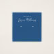 A classic blue earring display card: just white text on classic blue background, with the earring places indicated by two very small circles. The name is written in a modern script.