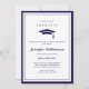 Celebrate in style with our timeless navy blue and white graduation party invitation, featuring blue frames and white background, elegant scripted name & date, and blue graduation cap. Perfect for marking this significant milestone, this invitation promises to set the tone for a sophisticated and memorable evening. Add a personal touch by uploading your photo on the back of the invitation.